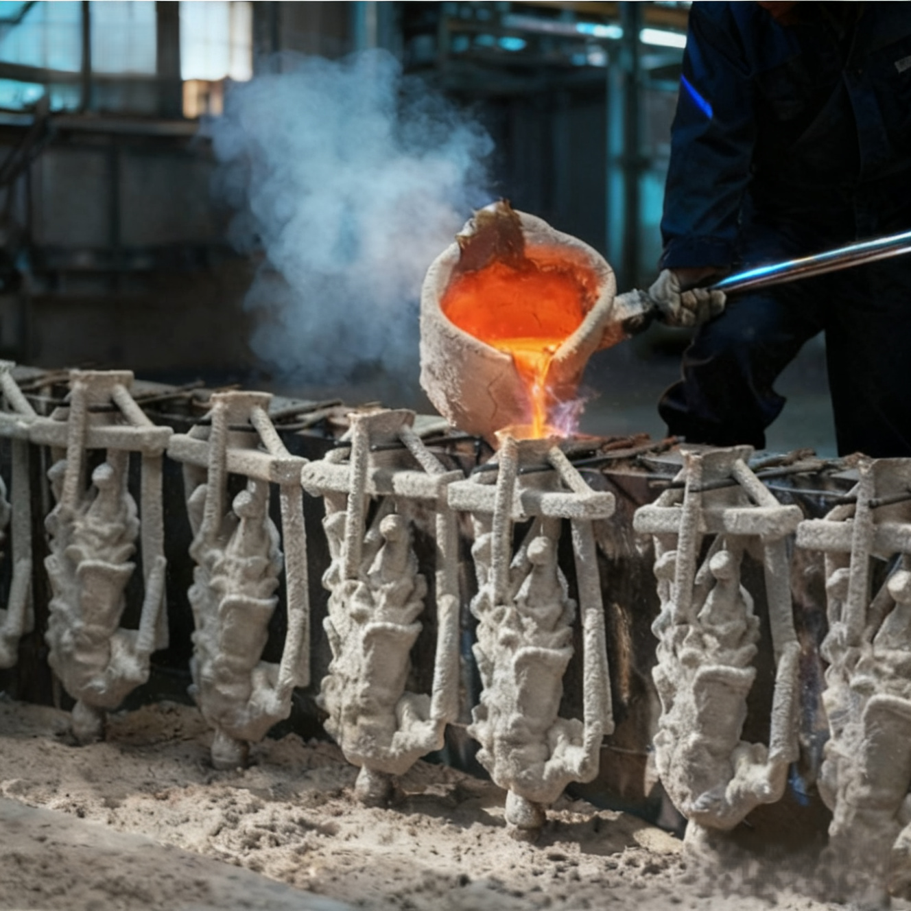 Through intense fire, molten copper is poured into carefully prepared molds. At thousands of degrees, the vision takes shape, solid and enduring.