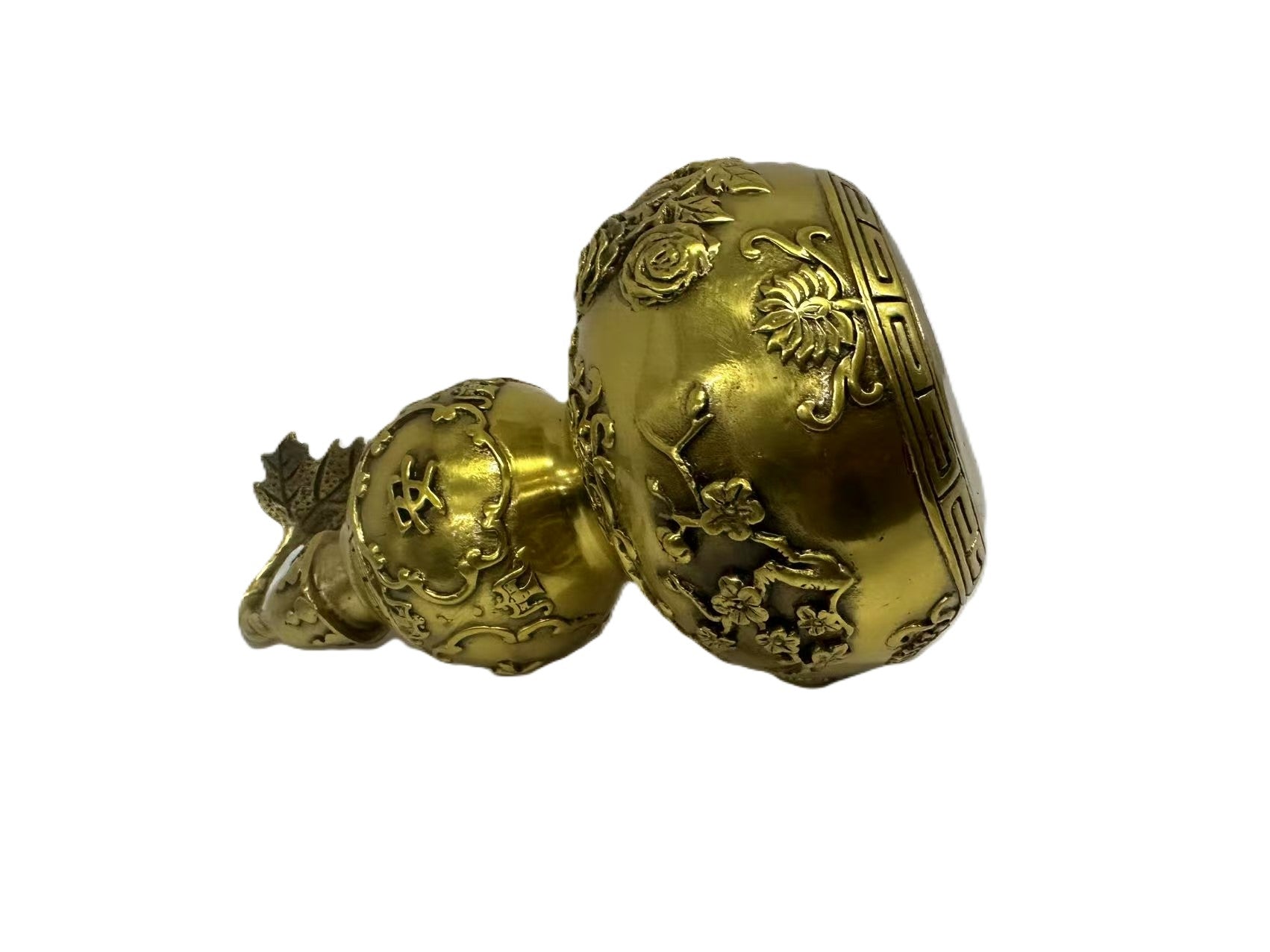 This solid brass Wu Lou (also known as the Gourd of Longevity) has been cherished in Feng Shui for centuries as a cure for illness and a symbol of vitality, peace, and long life. Featuring elegant floral engravings that represent the Four Seasons and a graceful leaf handle, this piece blends cultural symbolism with timeless style. Perfect for fall wellness, dorm blessings, or as a thoughtful holiday gift.