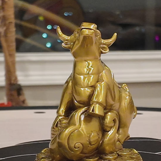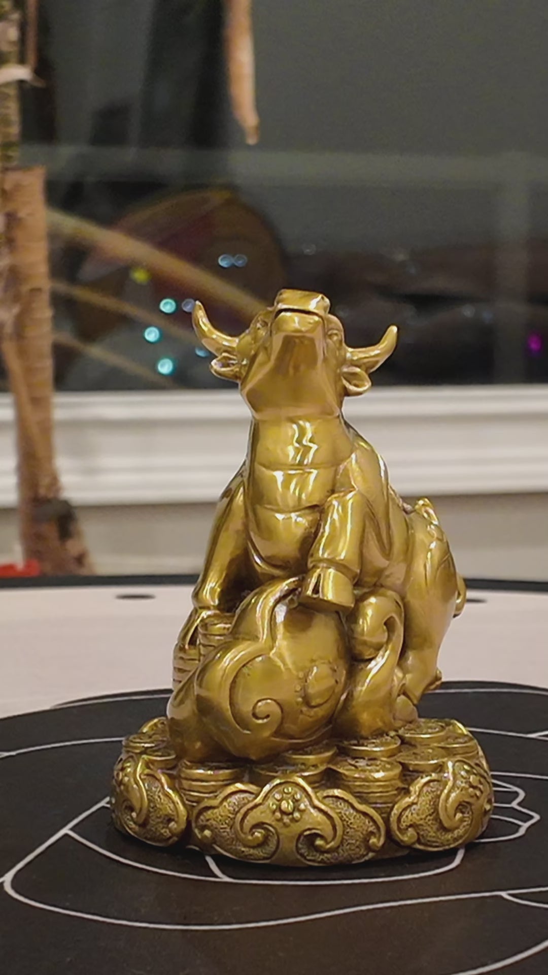 Honor perseverance and grounded energy with the Brass Zodiac Ox Statue. In Chinese astrology, the Ox represents strength, determination, and dependability — making it a powerful Feng Shui symbol for career growth, protection, and prosperity.
