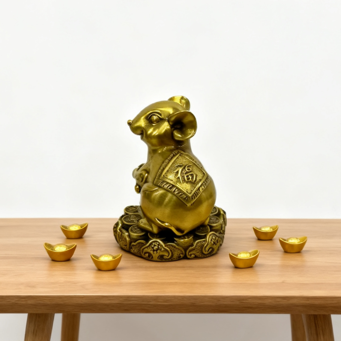 Brass Zodiac Rat Statue | Feng Shui Wealth & Wisdom Decor | Autumn Accent & Dorm Gift