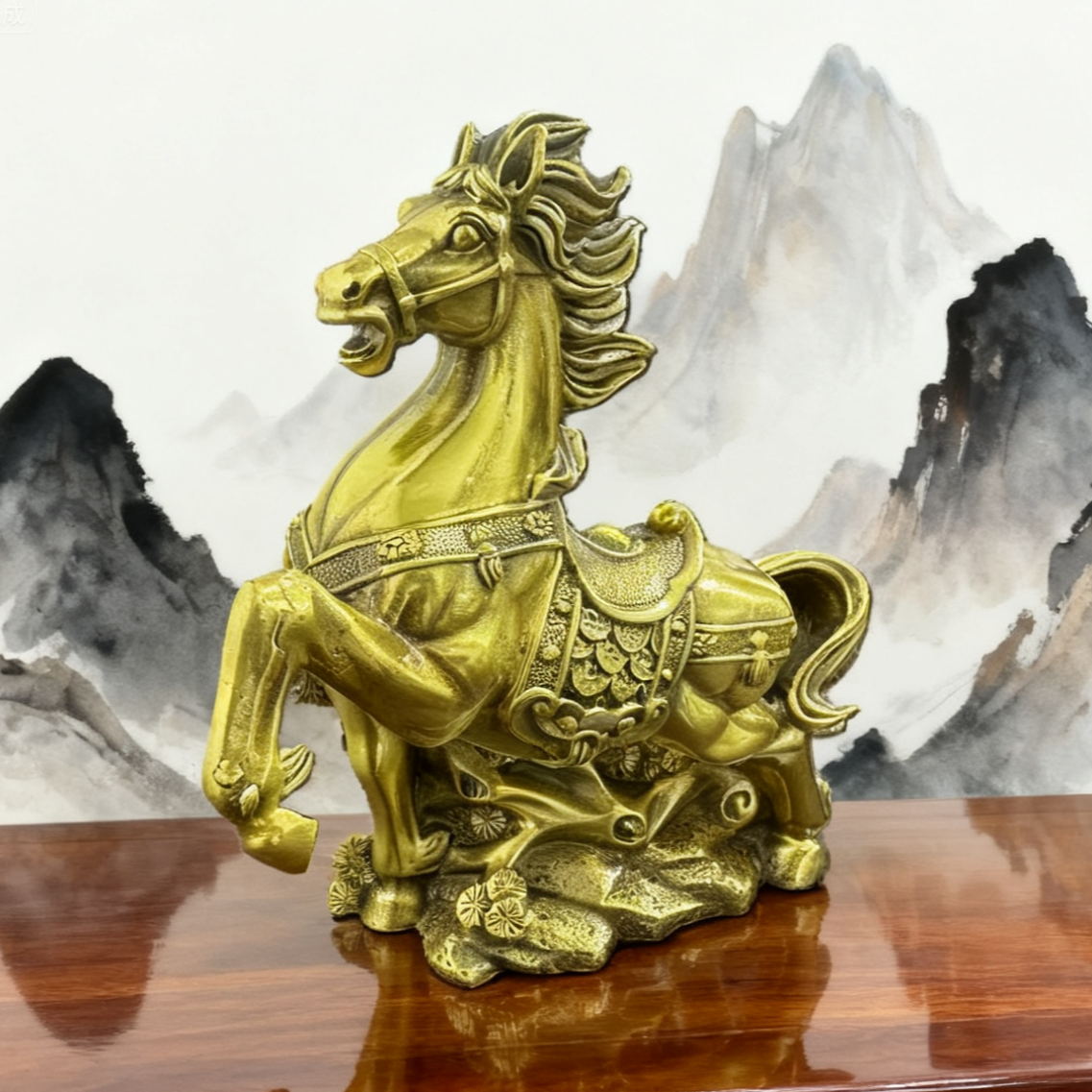 Solid Brass Horse Statue – Feng Shui Symbol of Strength, Ambition & Prosperity
